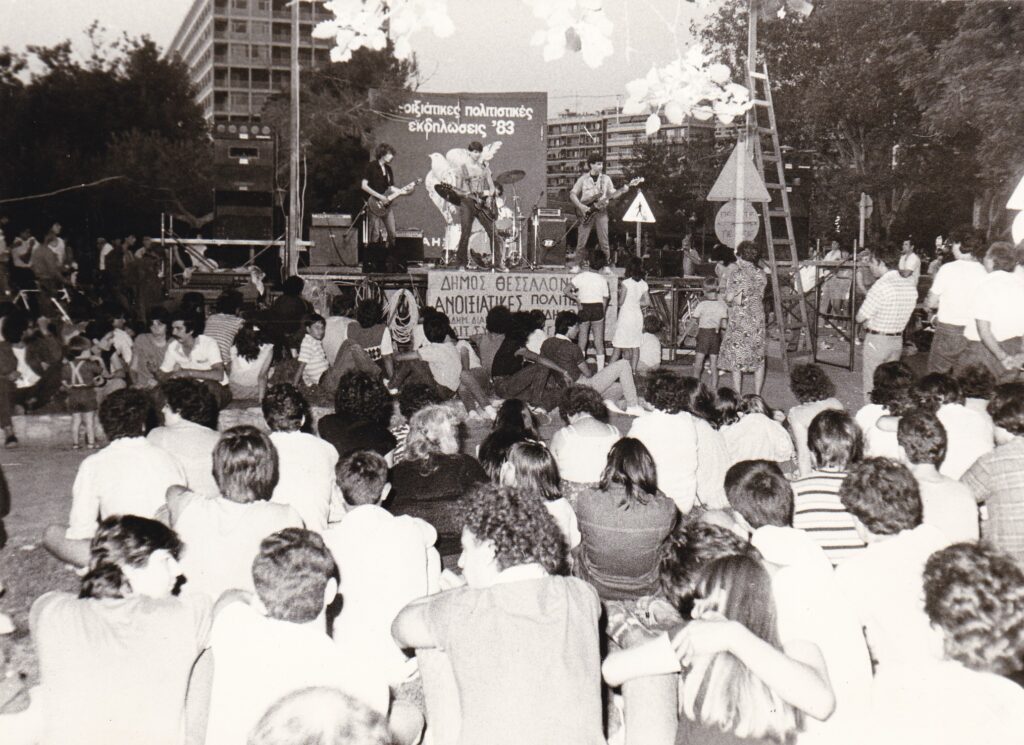 Εικόνα 4: Τοπικό μουσικό μαθητικό σχήμα του 14ου Λυκείου Θεσσαλονίκης, στις «Ανοιξιάτικες Πολιτιστικές Εκδηλώσεις» 1983 στην παραλία της Θεσσαλονίκης στο πάρκο Κυκλοφοριακής Αγωγής. Πηγή: Κέντρο Ιστορίας Θεσσαλονίκης, Φάκελος 1Β, υπό-φάκελος 5: Ε22.