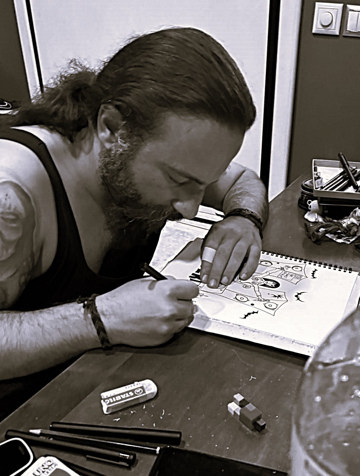 Τα σκίτσα του Πάνου Μπαρούτι αποτυπώνουν μια ολόκληρη κατάσταση. Είναι η φωνή της κοινότητας του DIY, που στέκεται όρθια μέσα στις δυσκολίες και την ισοπέδωση της σημερινής Ελλάδας∙ εκφράζεται, διεκδικεί, βρίσκει νόημα και δυνατότητες για τέχνη, συλλογικότητα και γέλιο εκεί που η κυριαρχία βλέπει μόνο ευκαιρίες για «ανάπτυξη», κέρδος και ξερίζωμα. Οργανικά ενταγμένος σε αυτή την σκηνή, ζει και δημιουργεί μέσα από τις μπάντες, εμπνέεται από τους στίχους τους και τη μουσική τους∙ ζωντανεύει τις φιγούρες του με την εικονοκλαστική διάθεση που μας έκανε να σκιτσάρουμε στα κρυφά στη σχολική αίθουσα, σαν το πιο σημαντικό πράγμα στον κόσμο εκείνη τη στιγμή να ήταν να γκρεμίσουμε τον παραλογισμό που μας περιέβαλε με ένα γέλιο. Σε αυτή την κουβέντα, ο Πάνος περιγράφει στο Merlin’s και τον Αλέξη Καλοφωλιά πώς ένα παιδί βρίσκει τον δρόμο του και τη θέση από την «άγονη» ελληνική επαρχία των ‘90s στο αθηναϊκό punk underground με πυξίδα τις αξίες του και τη δίψα για έκφραση.